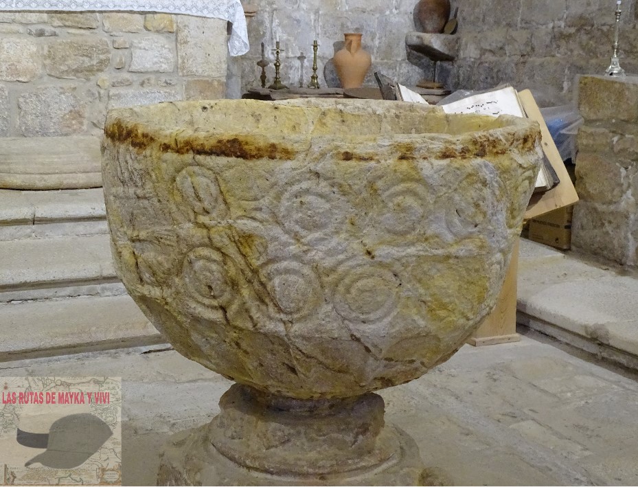 y desgastado ejemplar de pila bautismal románica, de copa troncocónica de 100